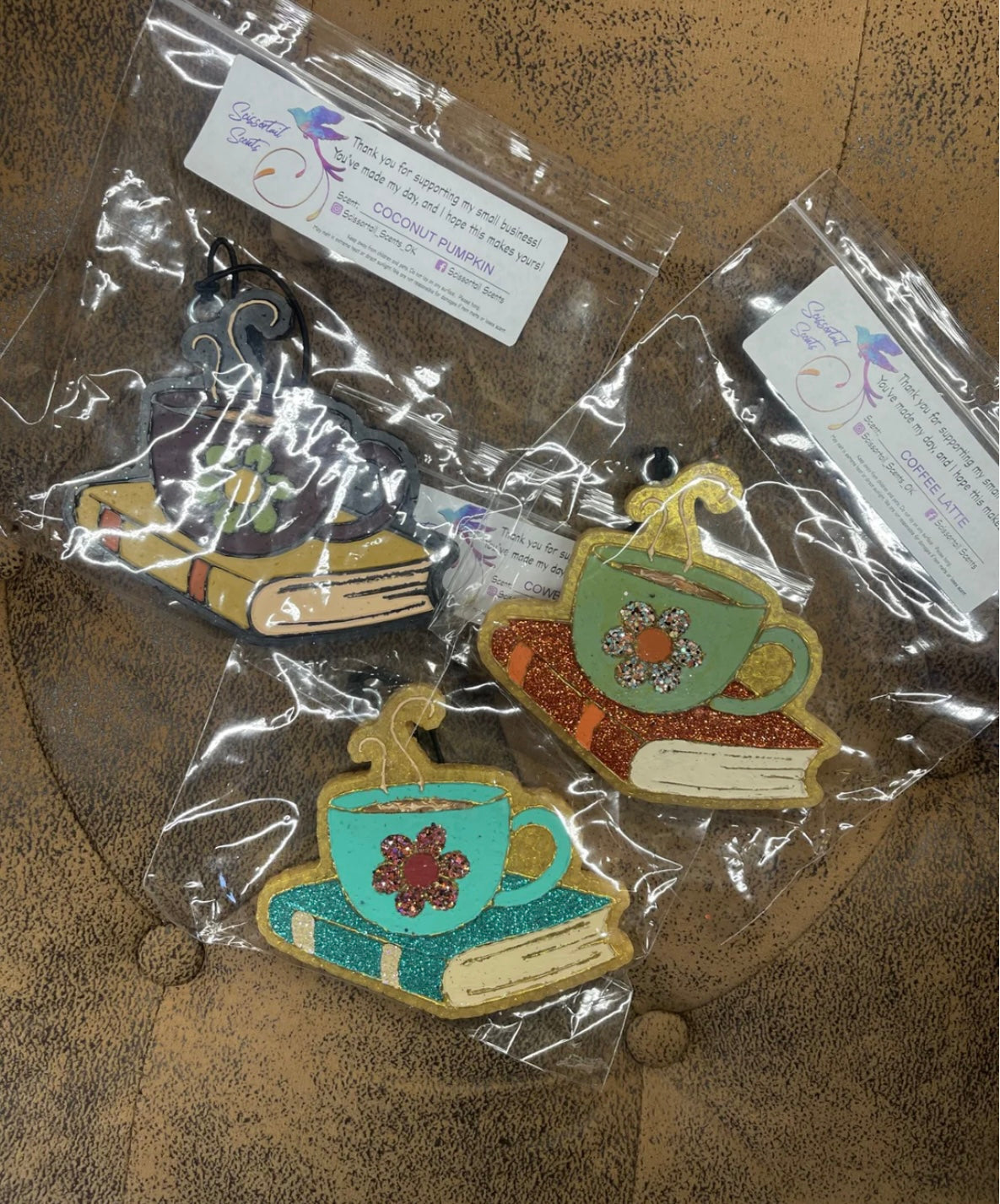 These are handmade by an Oklahoma lady out of Woodward, Scissortail Scents! Find her on Facebook and IG!