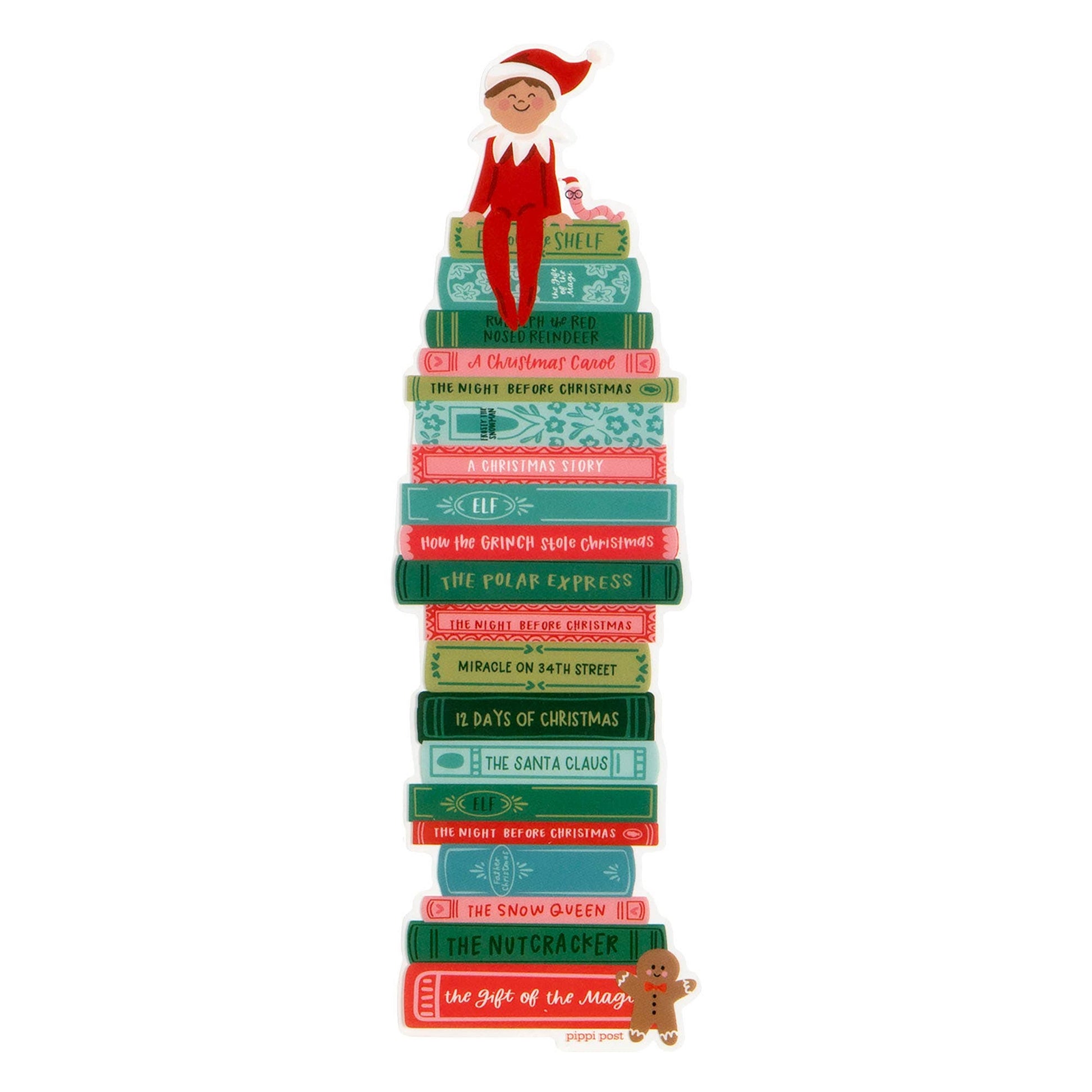 Add a touch of holiday cheer to your reading with our Holiday Book Stack Acetate Bookmark! This festive bookmark features a hand-illustrated design of a stack of holiday books, including classics like A Christmas Carol, The Polar Express, The Night Before Christmas, and Rudolph the Red Nosed Reindeer. Perched atop the stack is a cheerful elf. Immerse yourself in timeless holiday tales while our bookmark keeps your place with jolly style. Perfect for book lovers, and anyone who enjoys a good read during the merry season. Let the magic of the holidays accompany you on your literary journey with our Holiday Book Stack Acetate Bookmark!