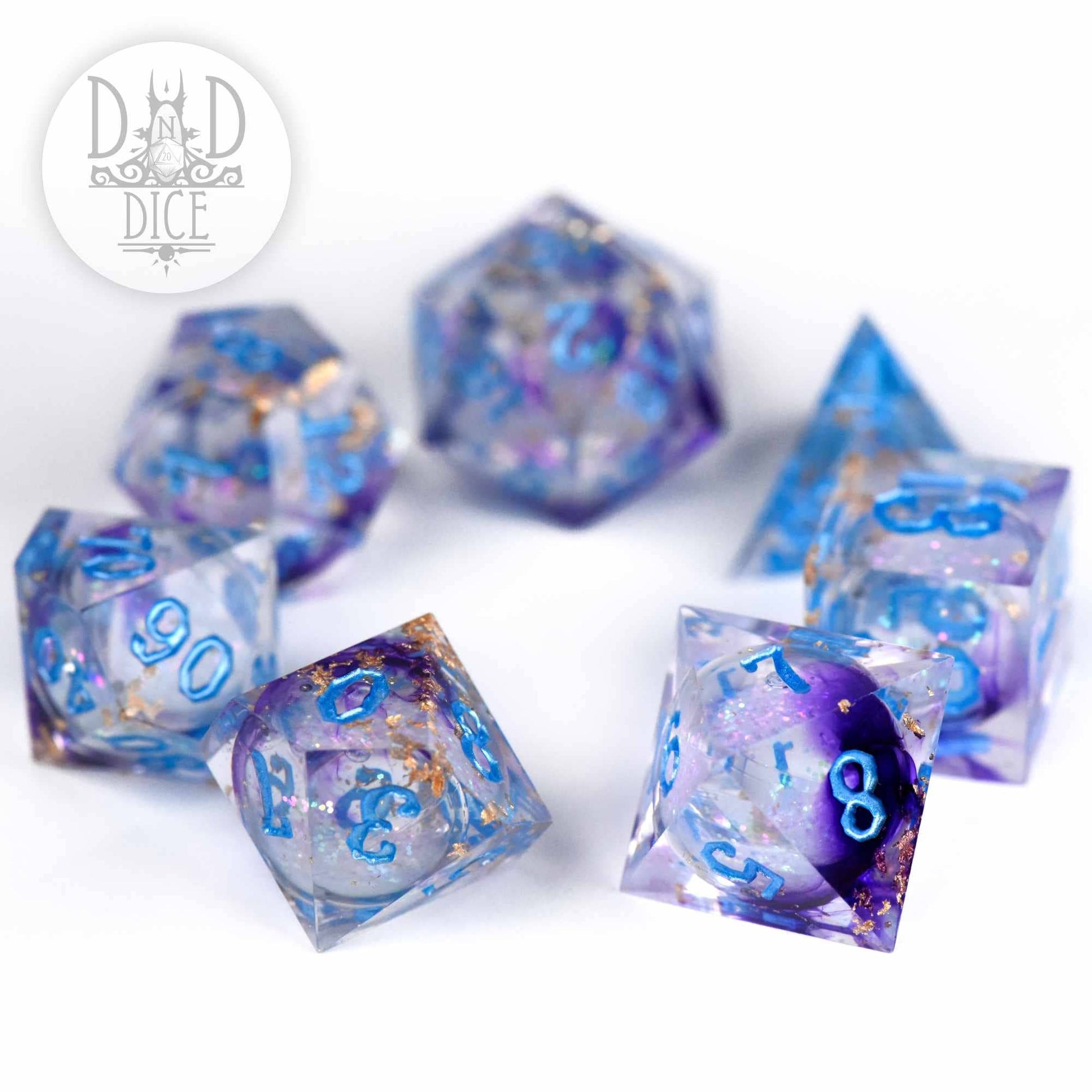 Note: The glitter is suspended in a liquid core and will move around while the dice are in motion. The liquid core is hand placed in each shape and may not be perfectly centered.