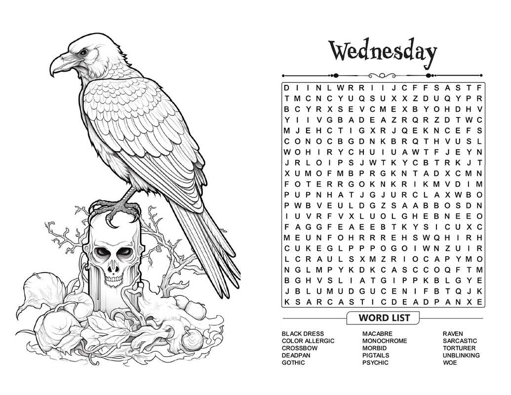 Celebrate your love of the macabre with 50 word search puzzles based on the life of everyone's favorite goth girl. . . Wednesday.